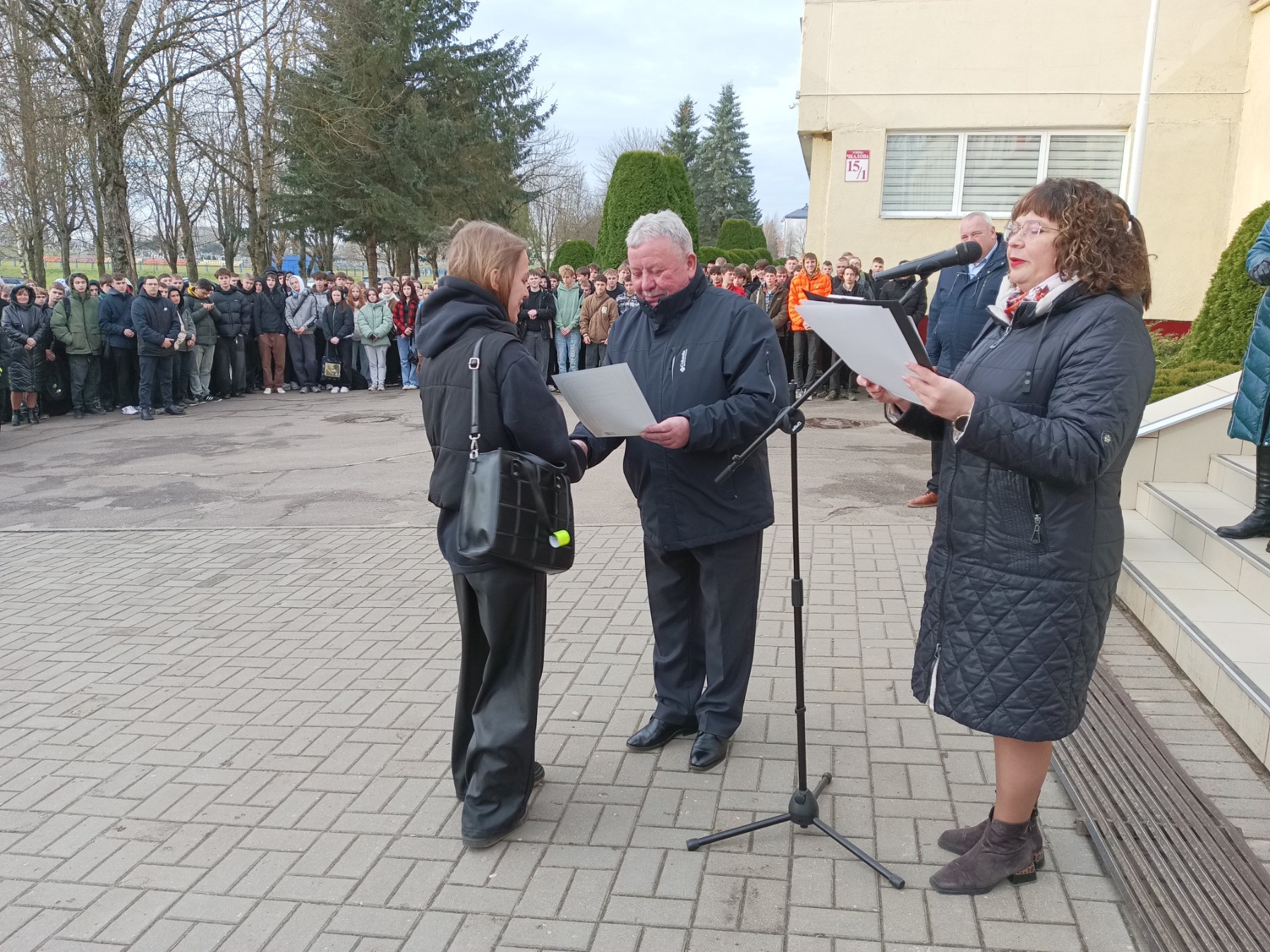 6 ноября 2025 года в колледже прошла торжественная линейка: «Праздничное событие и важные напутствия», которая собрала учащихся, преподавателей и сотрудников, создавая атмосферу единства и гордости за наш колледж. Мероприятие началось с приветственного слова заместителя директора по воспитательной работе Игнатович Марии Казимировны, которая поздравила всех с праздником – Днём Октябрьской революции, напомнив, что Великая Октябрьская социалистическая революция стала знаковой точкой XX века и оказала значительное влияние на развитие не только мировой истории, но и истории белорусской земли. Она определила новый этап в формировании белорусской государственности, способствовала реализации экономического и интеллектуального потенциала нашей страны, развитию национальной культуры. В конце своего выступления Мария Казимировна пожелала всем ценить мир и стабильность, преумножать достижения нашей страны, стремиться к достижению общего успеха.