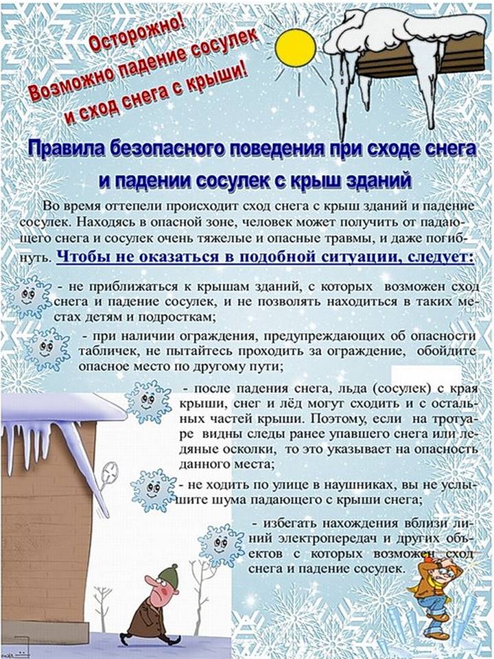 Основные рекомендации и меры предосторожности при угрозе схода снега с крыш зданий:
