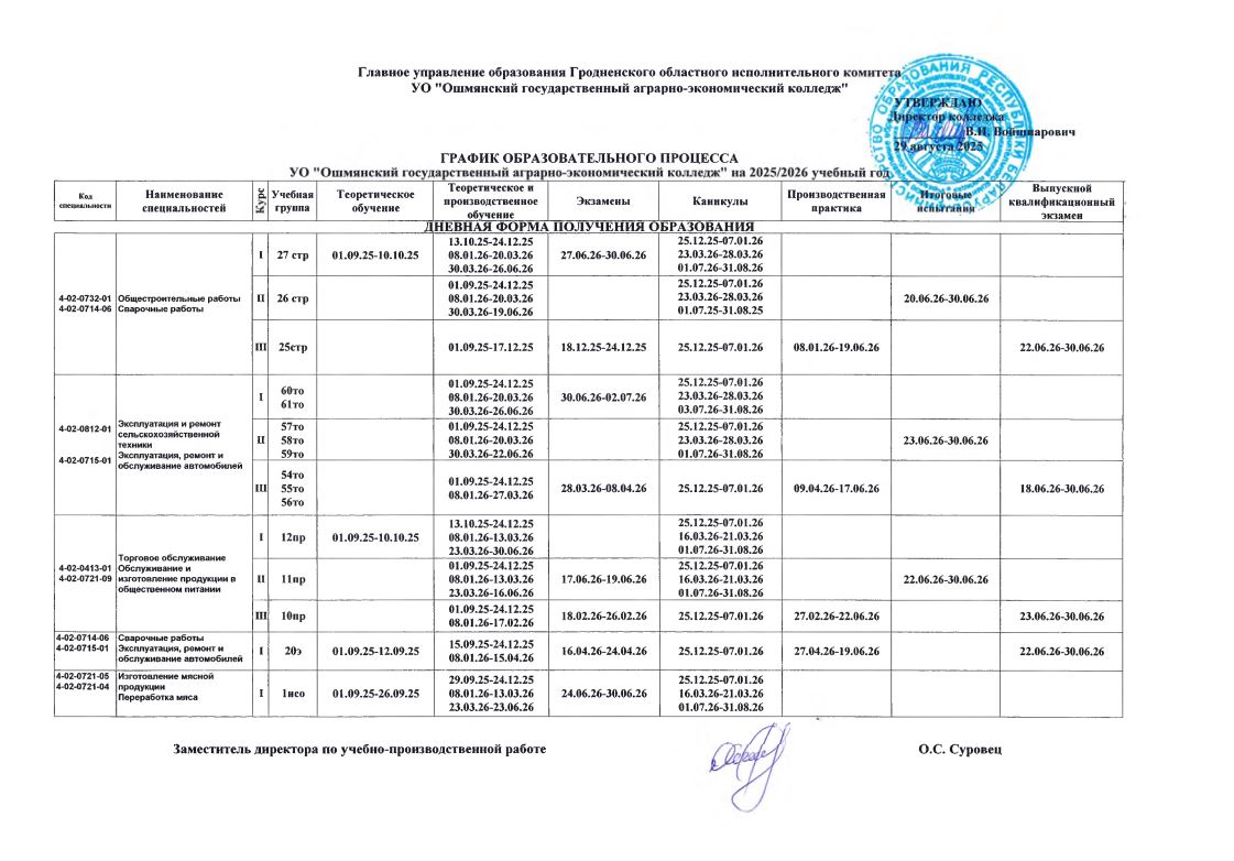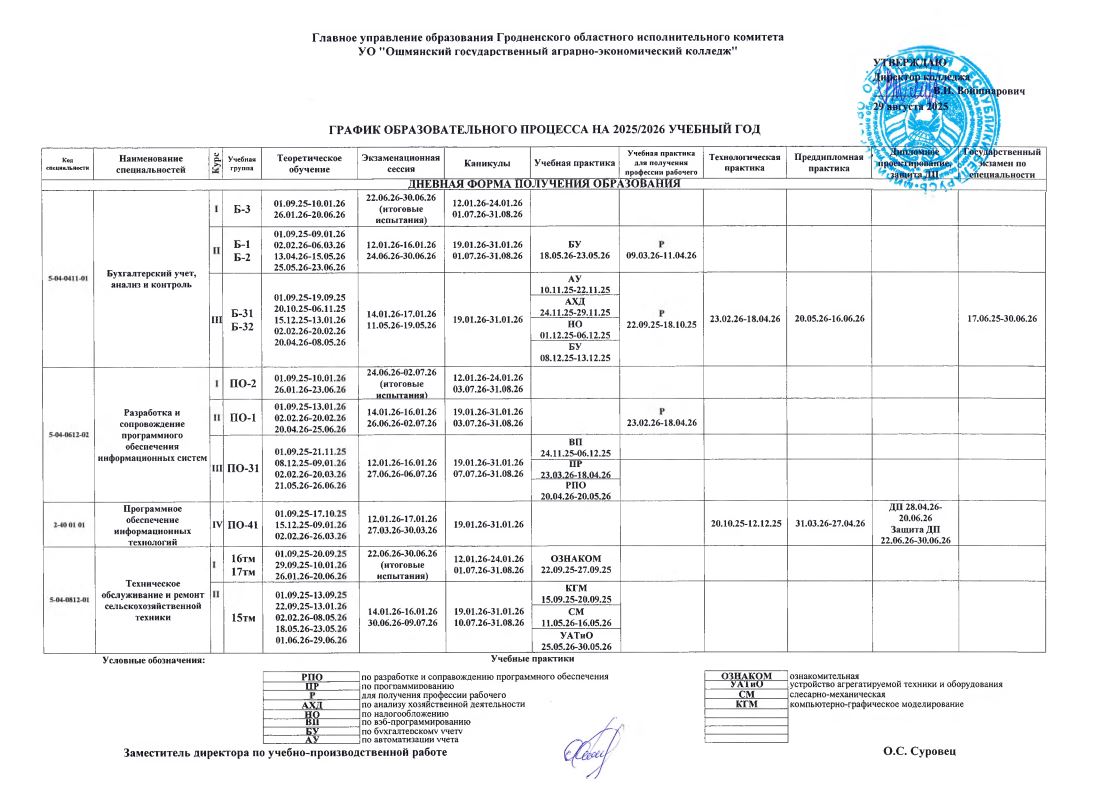 График образовательного процесса 2025 - 2026