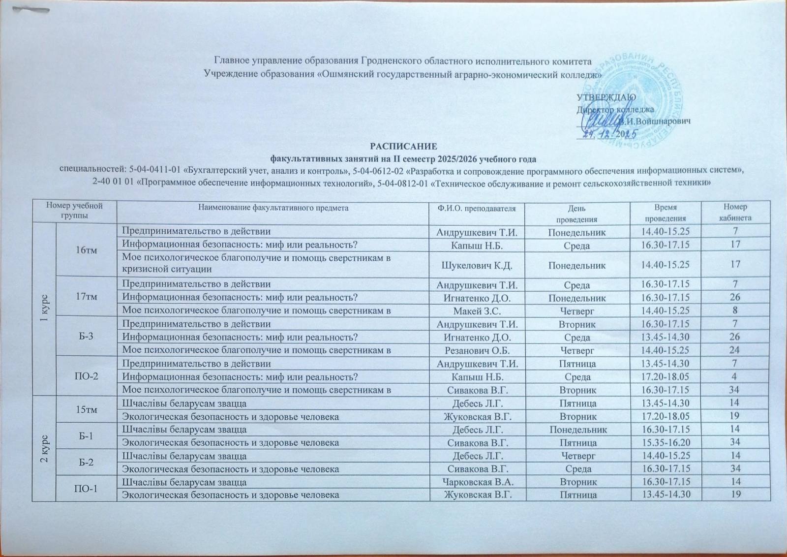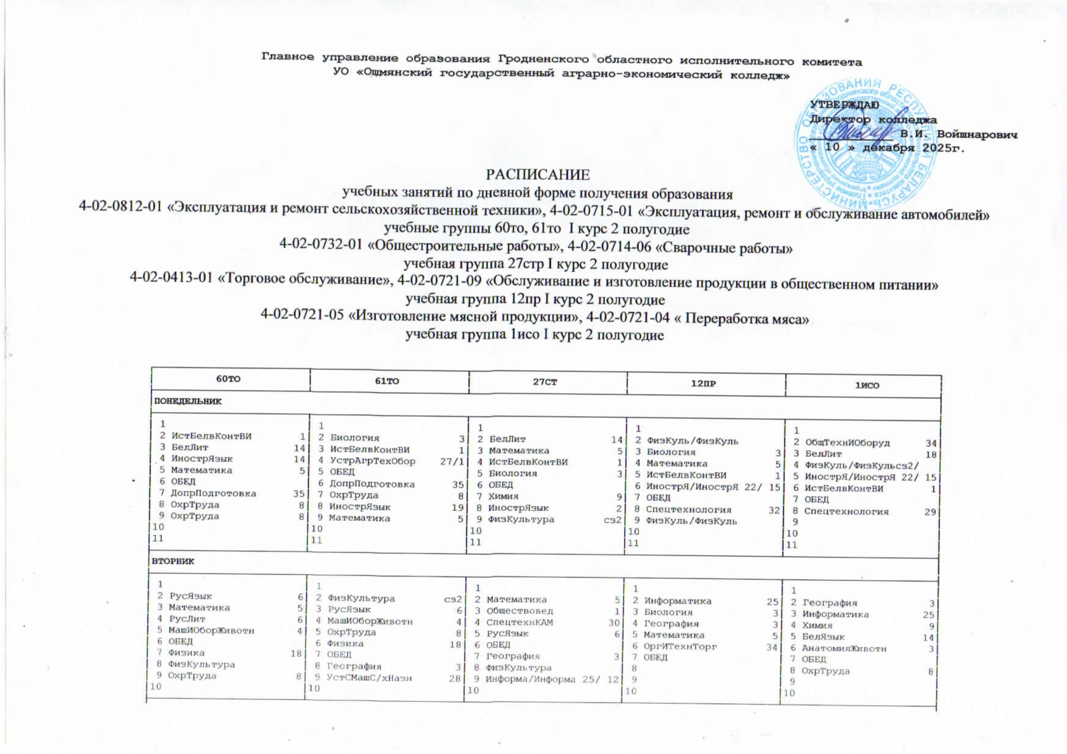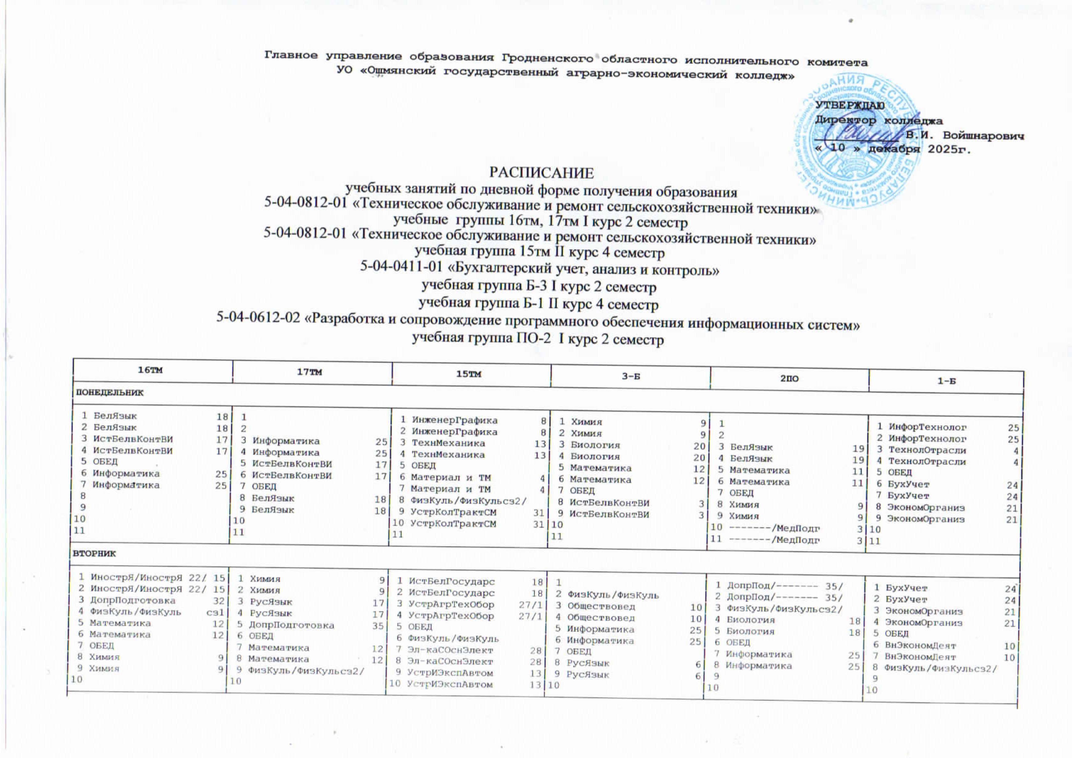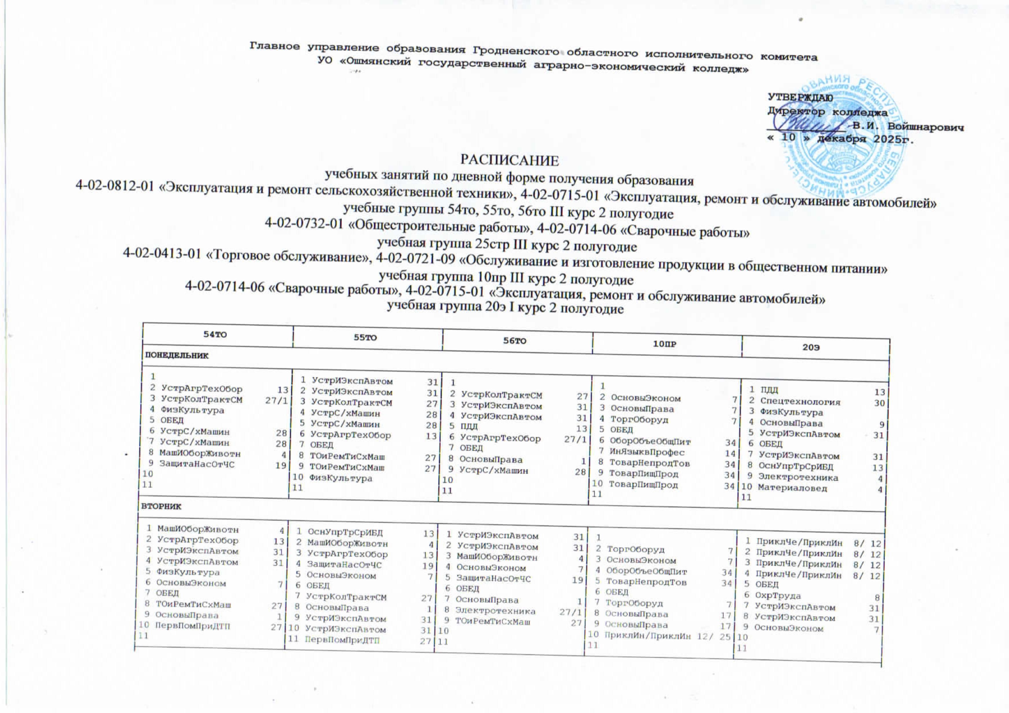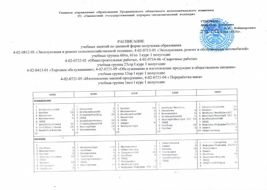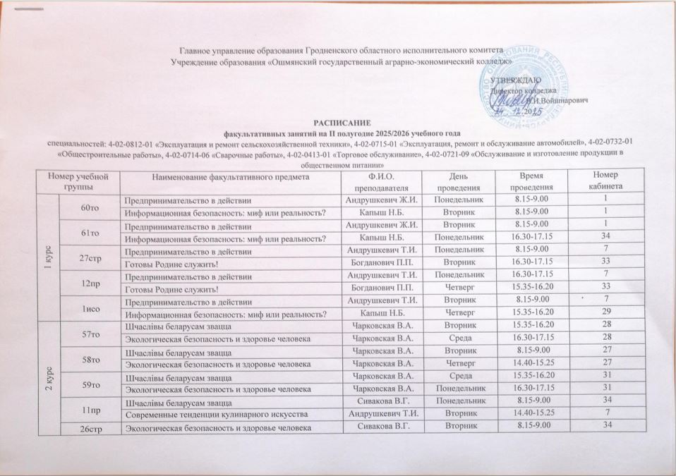 УО "Ошмянский государственный аграрно-экономический колледж"