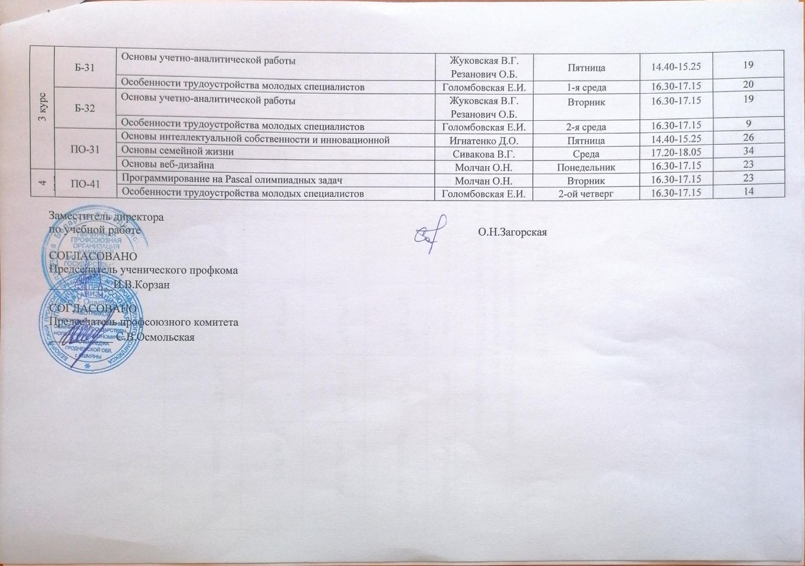 Расписание учебных занятий