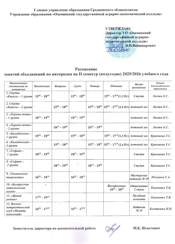 Расписание занятий объединений по интересам