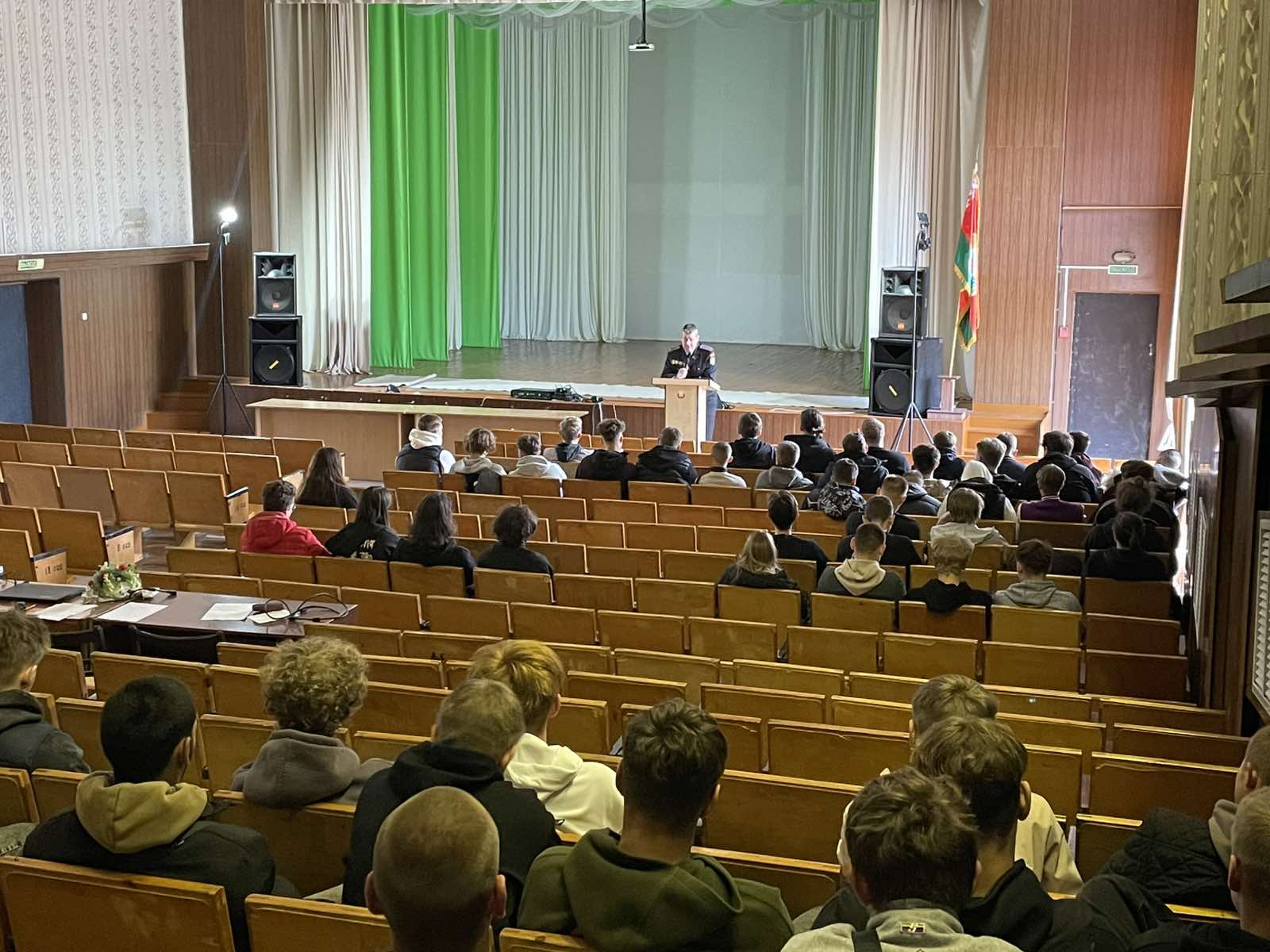 02.10.2025 г. в рамках профориентационного визита сотрудники Первомайского районного управления внутренних дел г. Минска рассказали учащимся об особенностях службы в органах внутренних дел. Участники встречи узнали о структуре РУВД, основных задачах подразделений, а также специфике профессии милиционера.