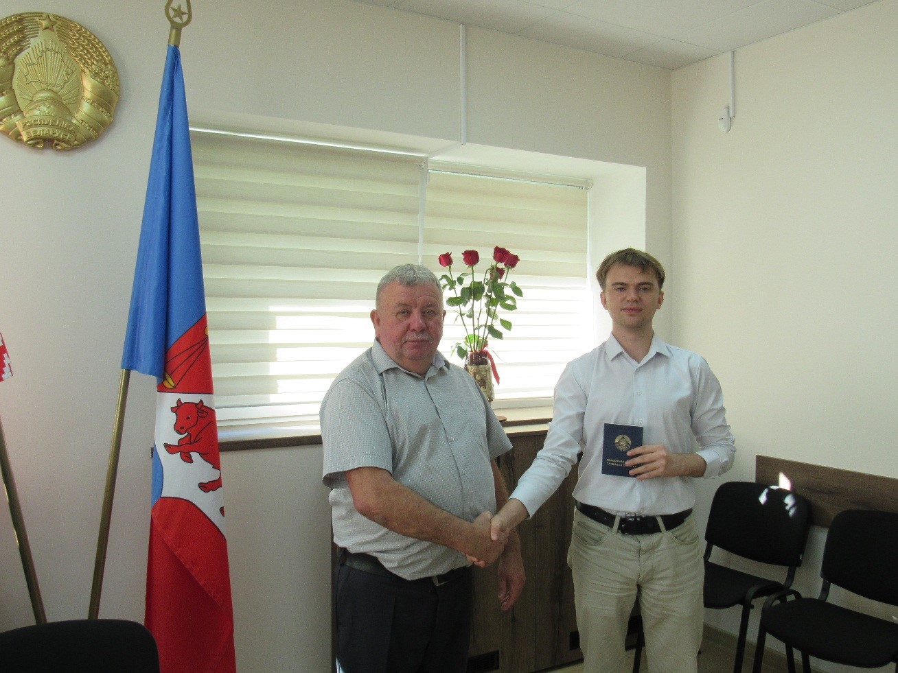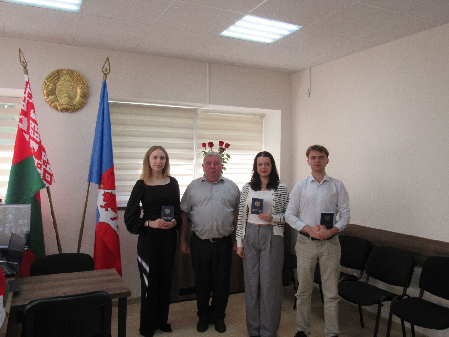 - В торжественной обстановке директор колледжа вручил молодым специалистам трудовые книжки.