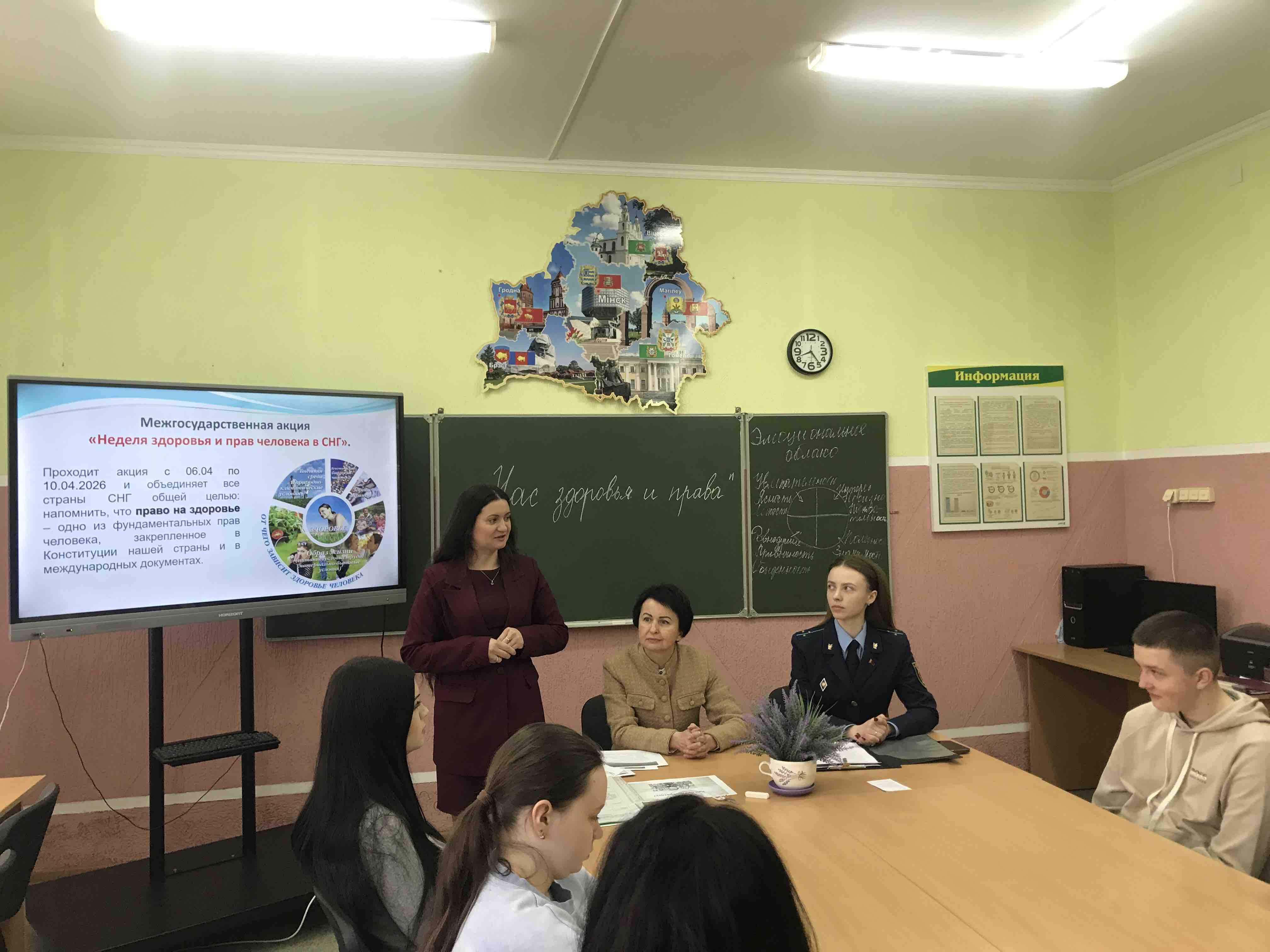 08.04.2026 в колледже прошел открытый урок «Час здоровья и права», организованный в рамках межгосударственной акции «Неделя здоровья и прав человека в СНГ». Мероприятие приурочено к прошедшему Всемирному дню здоровья. Особую значимость встрече придало то, что 2026 год в соответствии с решением Совета глав государств Содружества Независимых Государств объявлен Годом охраны здоровья — это решение реализуется в рамках Плана работы Комиссии по правам человека СНГ.