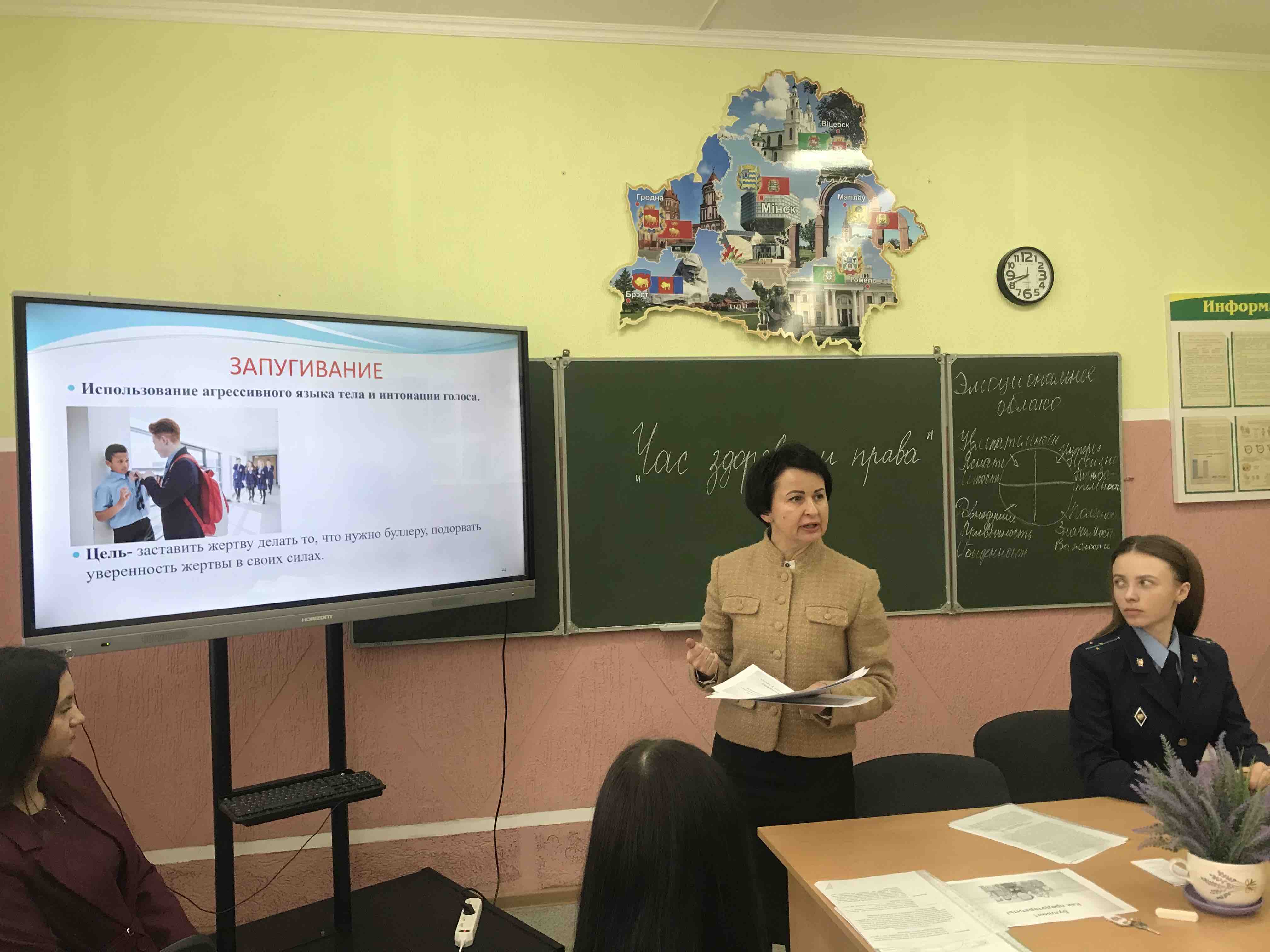 В качестве приглашенных спикеров перед учащимися выступили старший помощник прокурора Ошмянского района Александра Сергеевна Воеводская и педагог-психолог колледжа Светлана Александровна Ляконец.