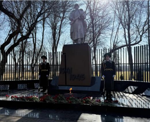 Завершился митинг-реквием возложением цветов к памятнику погибшим воинам.