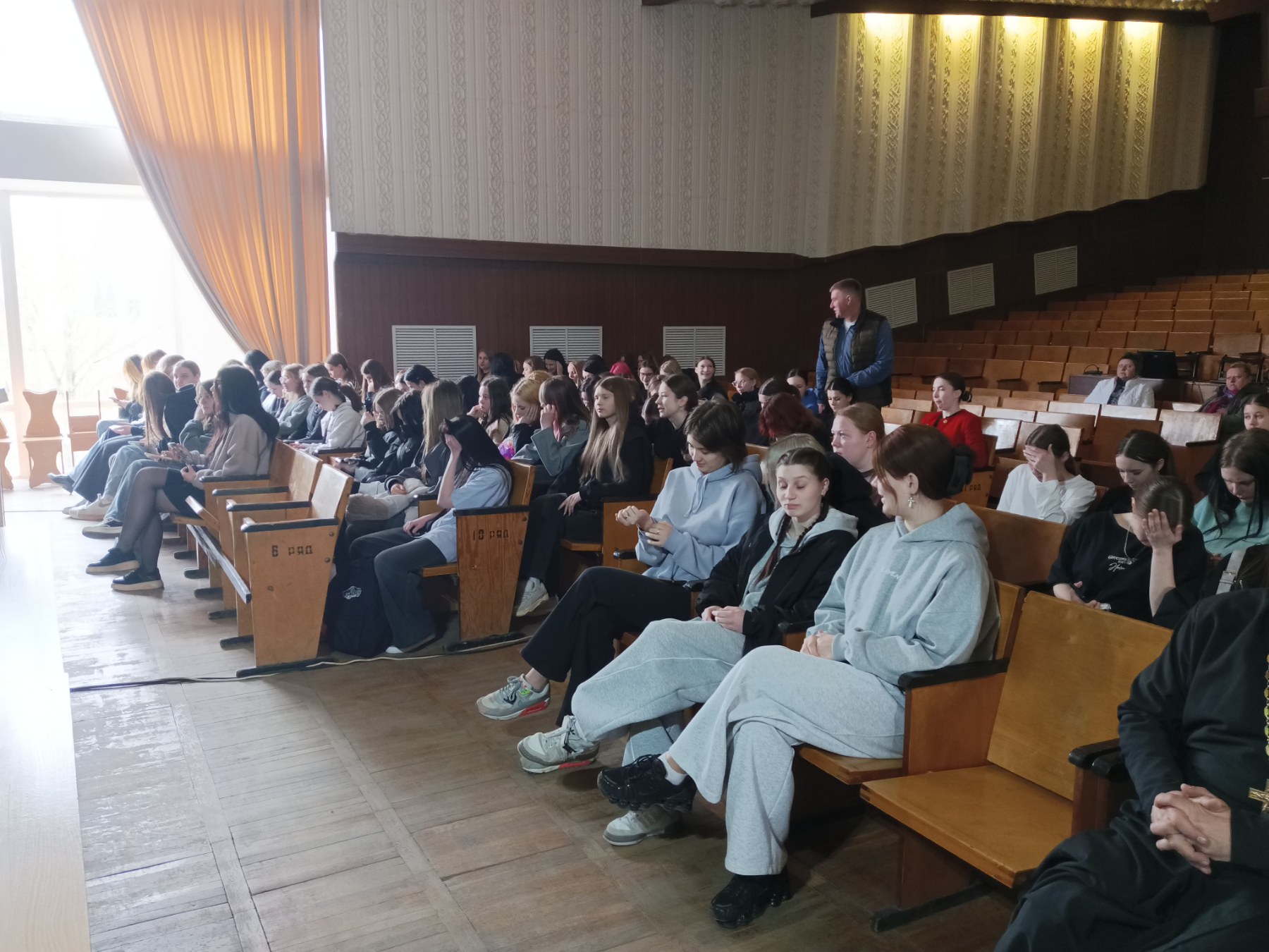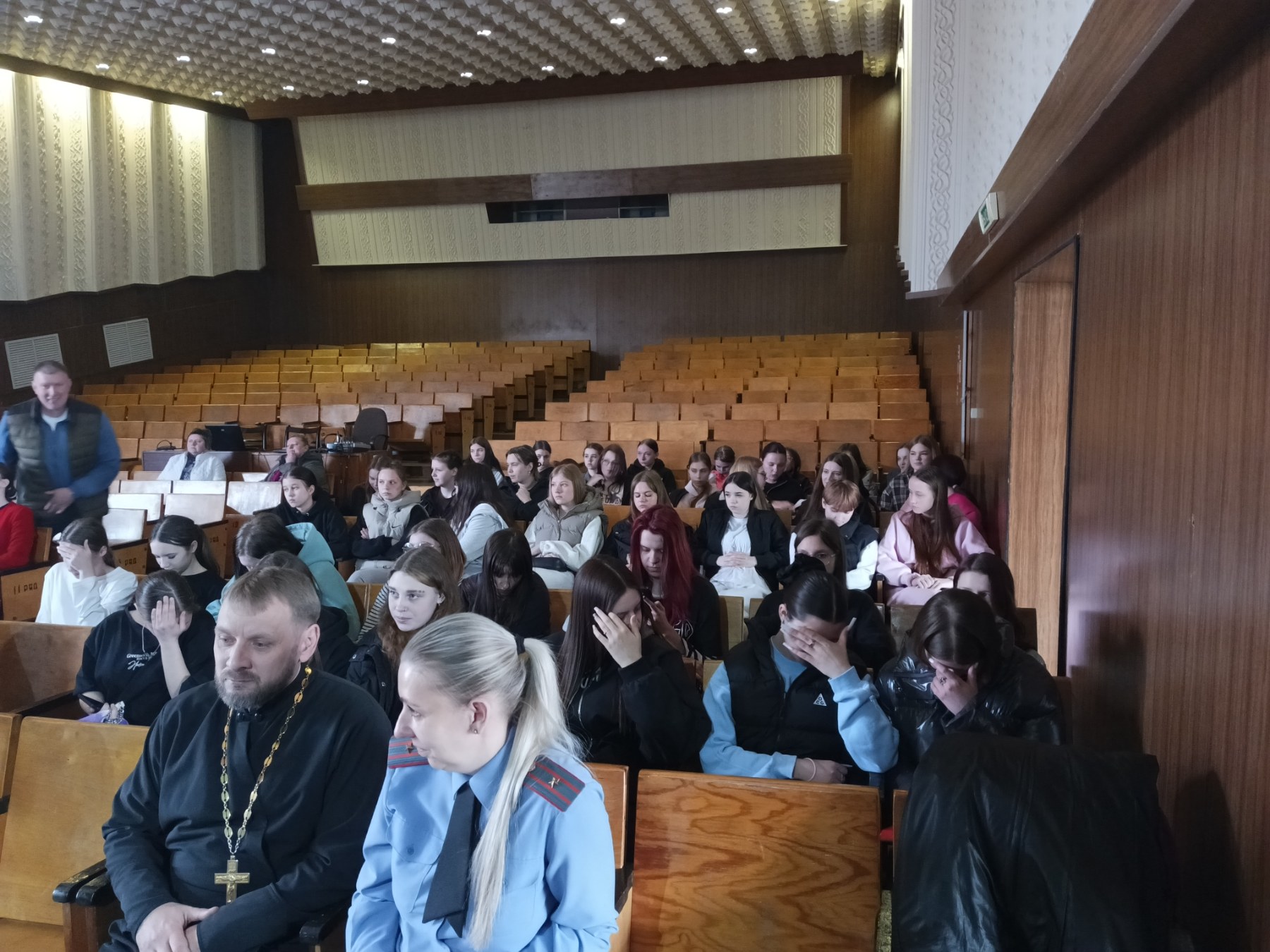 26.03.2026 в стенах колледжа состоялась важная встреча, посвященная вопросам нравственного воспитания, взросления и формирования ответственного отношения к жизни «Цени свою жизнь». В открытом диалоге приняли участие настоятель Храма Воскресения Христова протоиерей Георгий Муха и заместитель директора по воспитательной работе Мария Казимировна Игнатович. Мероприятие собрало учащихся-девушек, которым предстоит сделать осознанный выбор на пути к созданию крепкой семьи.