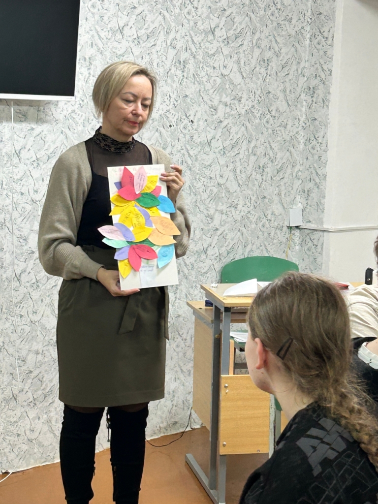 05.11.25 на 4 этаже общежития для учащихся педагог социальный Хоронжая С. Н провела занятие с элементами тренинга « Я люблю тебя жизнь» с целью формирования осознанного отношения к жизни. А также провела диагностику эмоциональных барьеров в межличностном общении с целью выявления эмоциональных проблем в повседневном общении