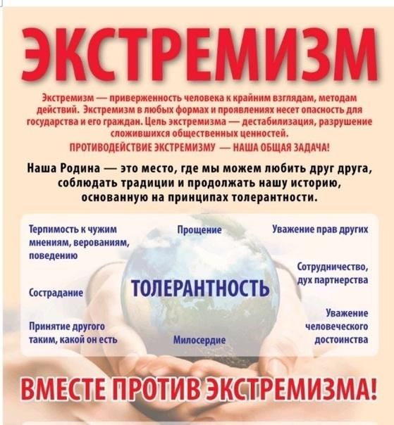 Только общие усилия, создание атмосферы терпимости и взаимопонимания станут мощным заслоном развития экстремизма в обществе, в том числе и среди молодежи. А помочь молодым – наша общая задача и обязанность. Ибо экстремизм – это вызов обществу, и любые акты экстремизма являются преступными, и не имеют оправдания независимо от мотивов, форм и методов.