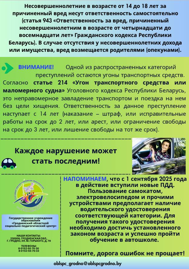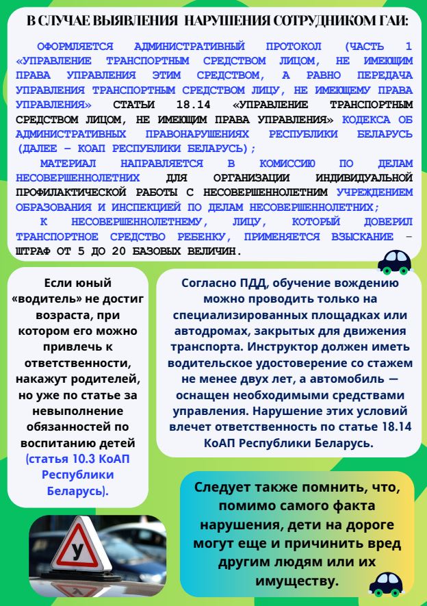 Памятка "О запрете управления транспортным средством несовершеннолетними"