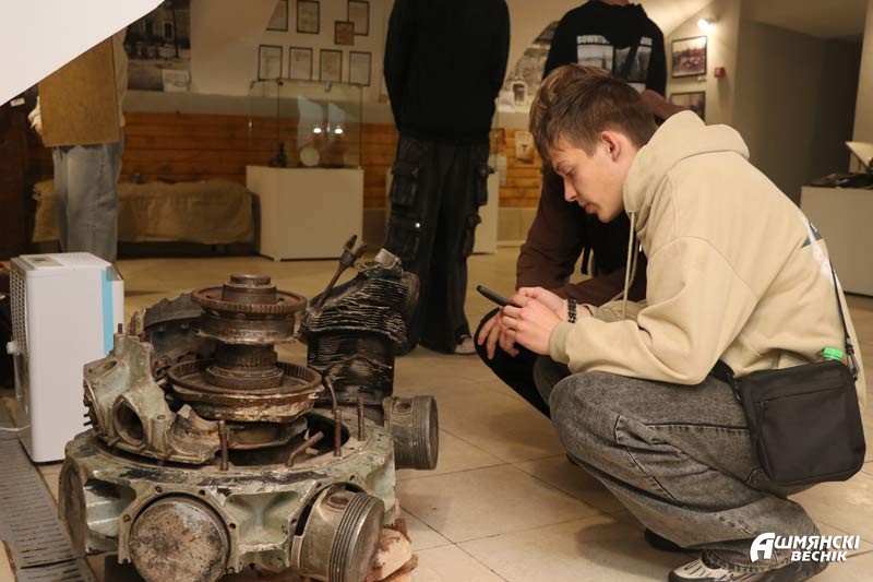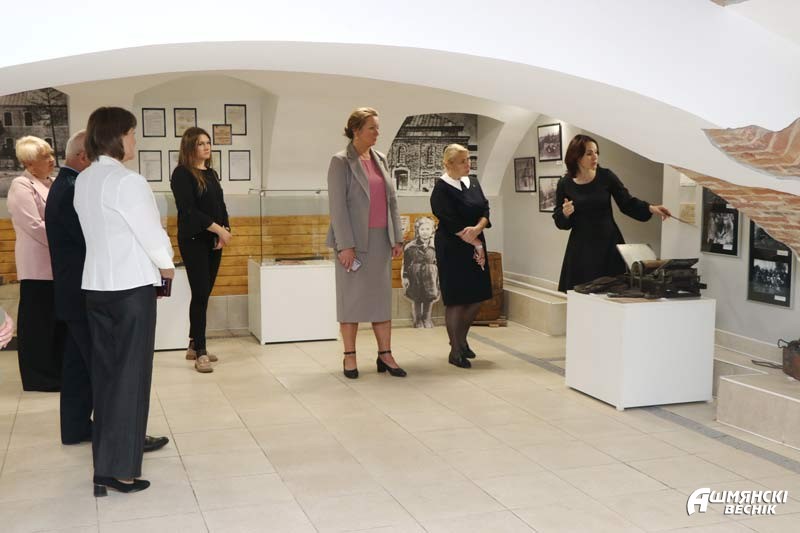 Посетители выставки вместе с директором музея Анастасией Новицкой совершили экскурс в трагические события немецкой оккупации на Ошмянщине. Рассказ Анастасии Васильевны дополнили многочисленные экспонаты той поры. Двигатель бомбардировщика, сбитого в начале войны около д. Берники, немецкое блюдце, сохранившееся в семье жителей города, двери тюрьмы, находящейся в здании бывшей школы-интерната, печатный станок, на котором партизаны печатали листовки и районную газету, плиты с фамилиями воинов-освободителей, переданные в музей после реконструкции памятника на братской могиле в городском парке, документы и фотографии… А вместе с ними воспоминание уроженки Ошмян Розы Яловой о жутких испытаниях, выпавших на долю ее матери – полные трагизма переживания, связанные с существованием в нашем городе еврейского гетто.