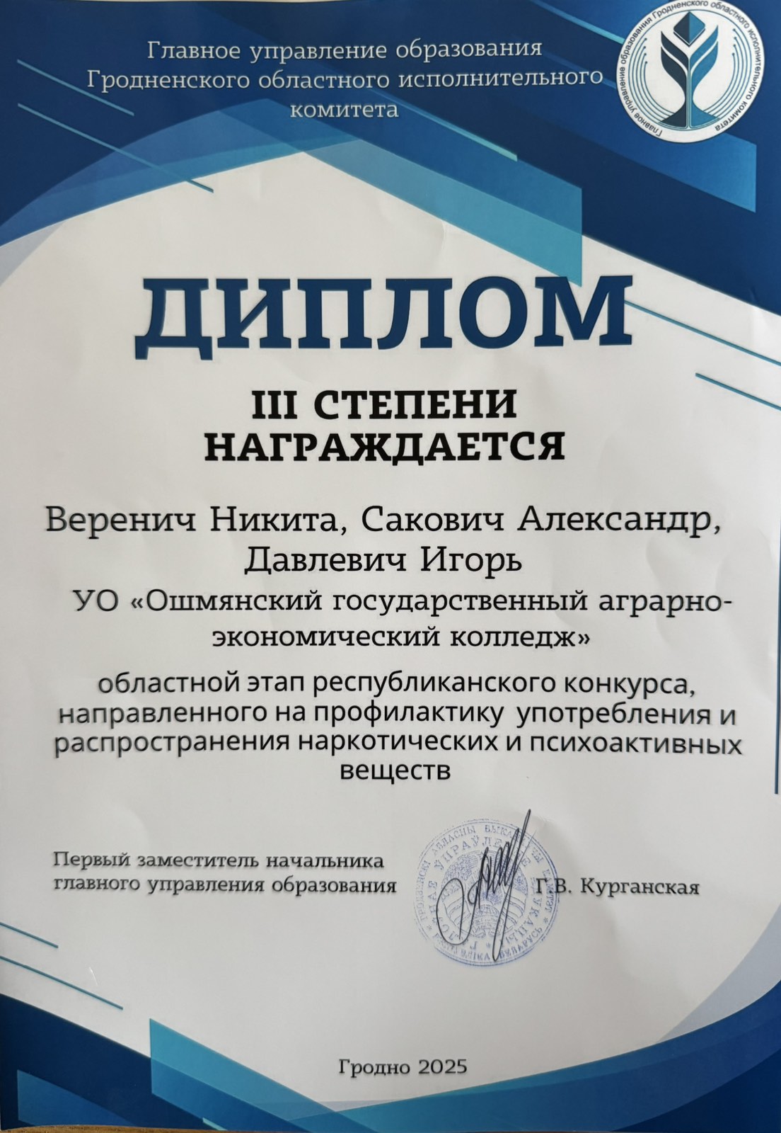 Поздравляем Войшнаровича Виктора Ивановича, директора УО «Ошмянский государственный аграрно-экономический колледж» с высокой наградой Гродненского областного исполнительного комитета!