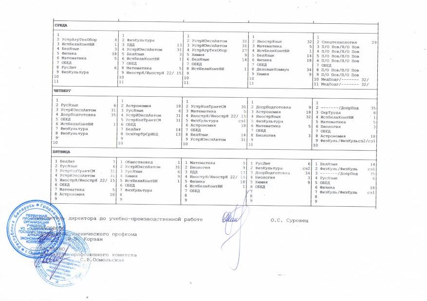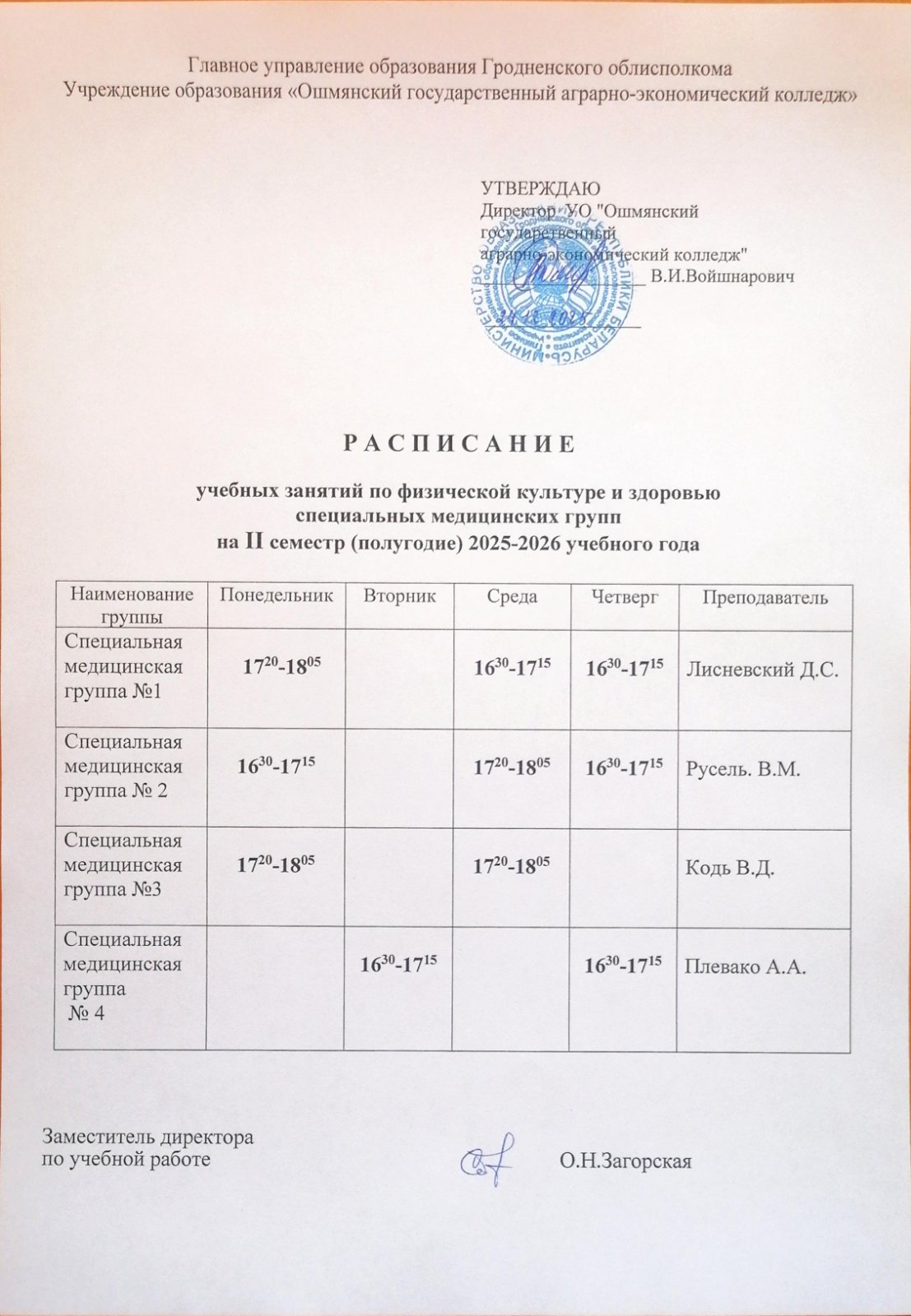 Расписание учебных занятий по физической культуре и здоровью специальных медицинских групп