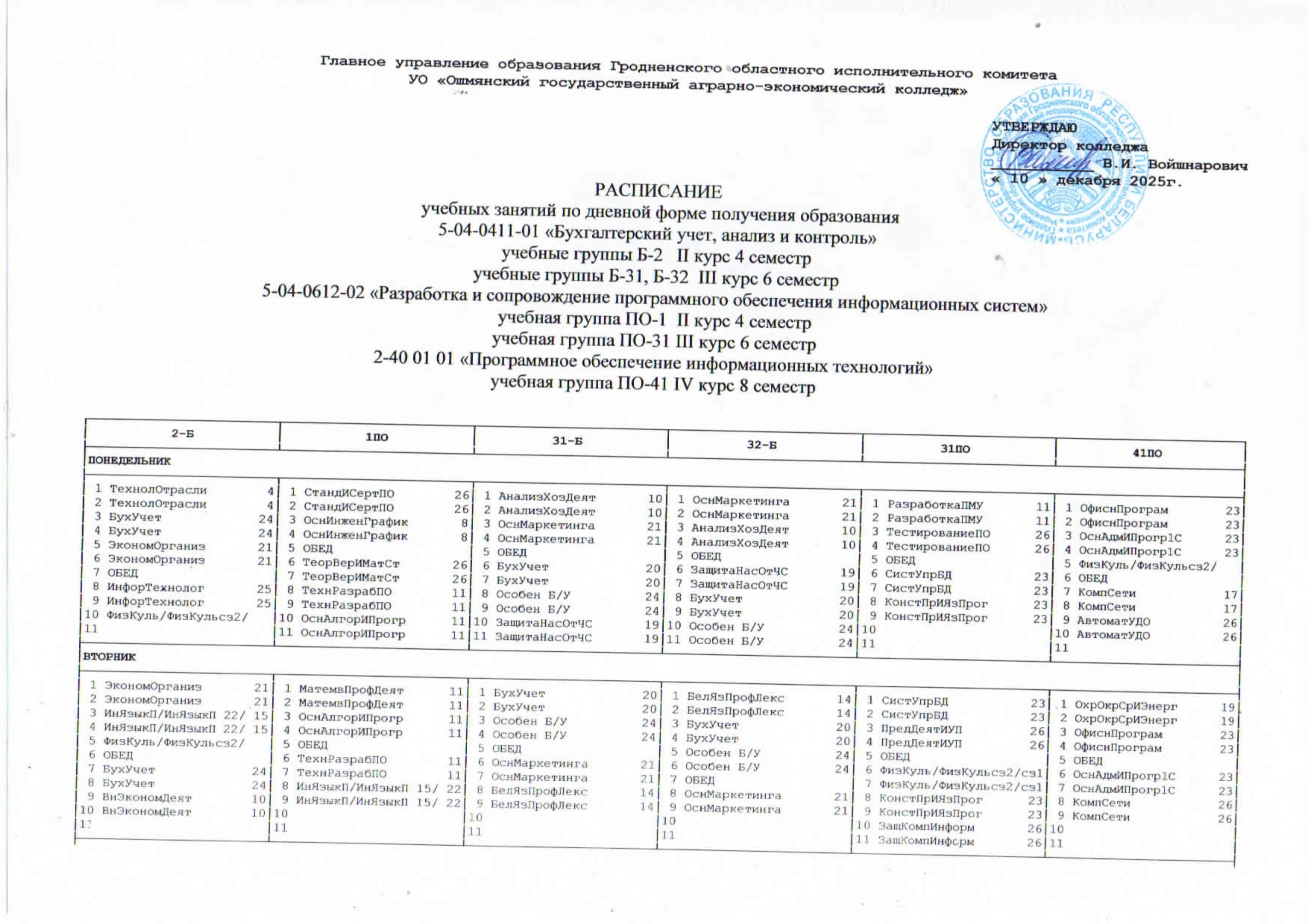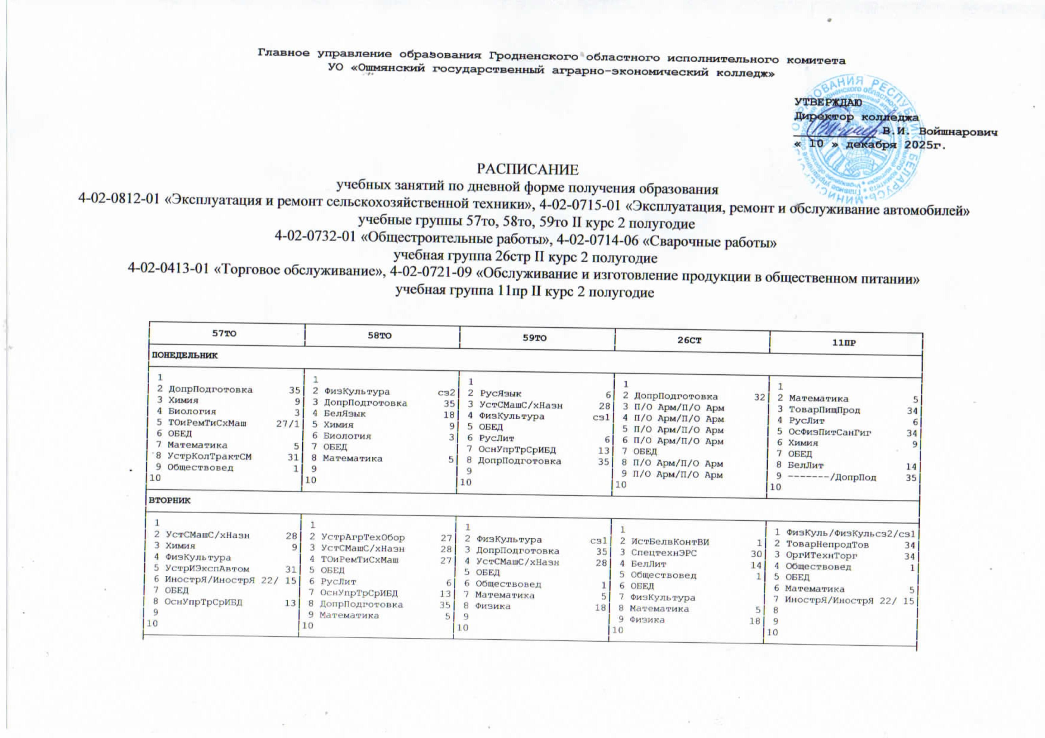 УО "Ошмянский государственный аграрно-экономический колледж"