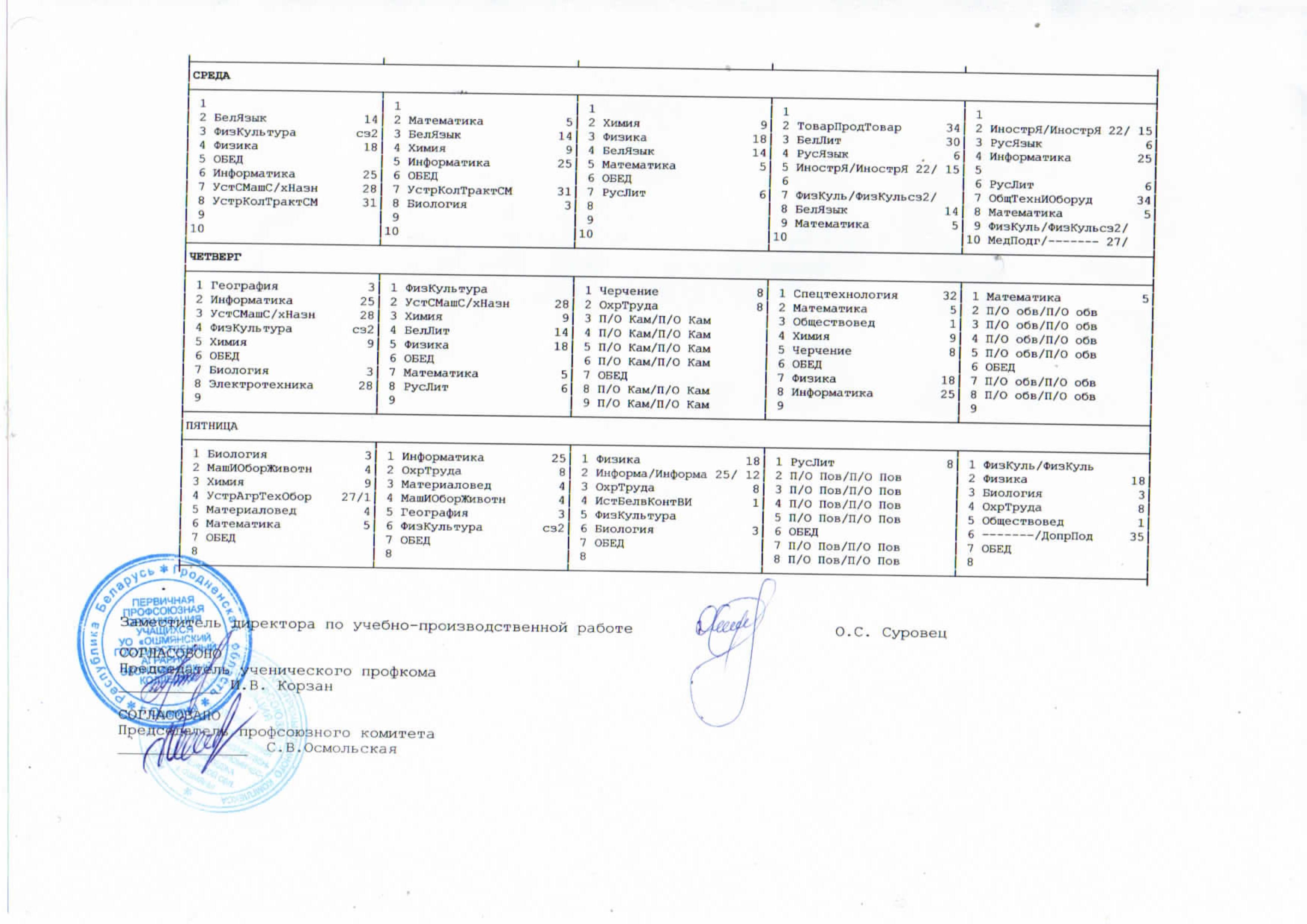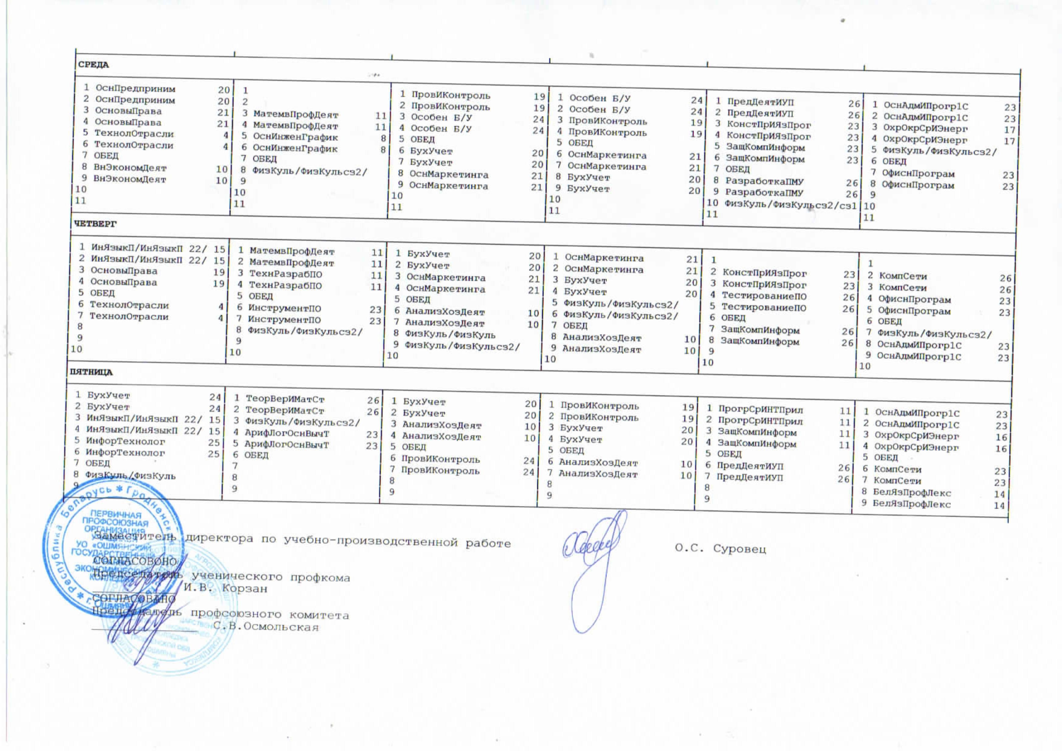 Расписание учебных занятий